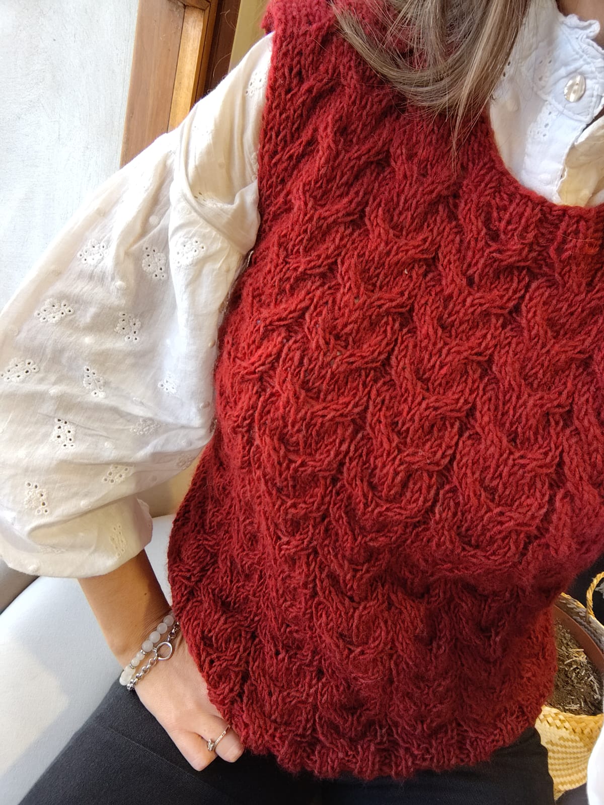 Este chaleco es una obra artesanal única, tejido completamente a mano Su textura y diseño reflejan la dedicación y el saber ancestral de nuestras tejedoras, creando una prenda cálida, original y con un profundo valor emocional. Cada pieza lleva horas de trabajo, amor y una historia que conecta la moda con la sostenibilidad.